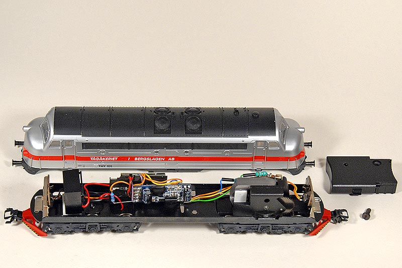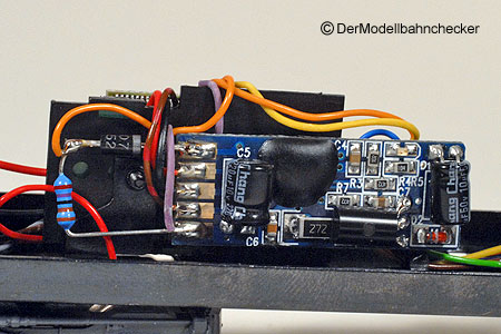 im Digitalbetrieb: Das Modell basiert auf einer ausgereiften Konstruktion mit 5*-Motor, der in Verbindung mit einem Zahnradgetriebe auf 3 Achsen wirkt. Bei Einstellung der Fahrstufe 1 setzt sich die Lok mit geringer Geschwindigkeit in Bewegung und hält diese ohne Ruckeln. Die Abstimmung der Fahrstufen ist im unteren Bereich sehr gut gelungen. Im oberen Drittel der steuerbaren Fahrstufen steigt die Geschwindigkeit zu schnell an. Die Höchstgeschwindigkeit bei diesem Modell liegt bei etwa 200 km/h - und damit deutlich über dem vertretbaren (und vorbildkonformen) Wert. Eine Verminderung durch eine Umprogrammierung ist daher für diejenigen Modellbahner, die "Fahrbetrieb" machen, angebracht. Das kann aber jeder für sich selber entscheiden und durchführen. Die Getriebegeräusche sind im unteren Bereich anzusiedeln. Dies gilt erfreulicherweise auch für die Geräuschkulisse des Schleifers. Positiv ist der dank des vorhandenen Zahnradgetriebes großzügige Auslauf zu vermerken. Im Analogbetrieb waren keine wesentlichen Unterschiede gegenüber dem Fahrverhalten bei digitaler Steuerung zu verzeichnen. |