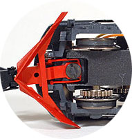Die Bedruckung ist sehr sauber ausgeführt. Die Sicherheitsstreifen auf den Räumern sind scharf abgegrenzt vom rötlichen Farbton. Die Schneeräumer sind ein Bestandteil der Kupplungskinematik und somit flexibel. |