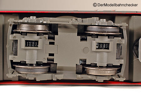 Die Geschwindigkeitskurve ist nicht linear. Bei höheren Fahrstufen ist ein größerer Sprung zwischen den Geschwindigkeiten der einzelnen Fahrstufen festzustellen. Schleifergeräusche sind bei C- bzw. K-Gleis kaum zu vernehmen. Die Fahrgeräusche bestehen aus einem "Surren", das durch das Metallgehäuse als Resonanzkörper verstärkt wird. Die Höchstgeschwindigkeit ist nicht überhöht. Dies gilt weitgehend auch für den konventionellen Betrieb. Hier zeigte sich bei unserem Testmuster allerdings manchmal ein Ruckeln. |