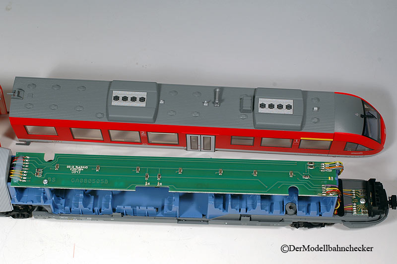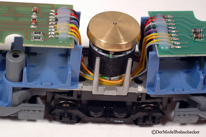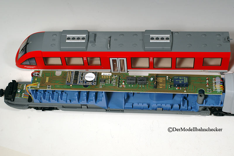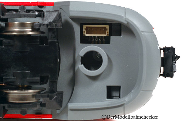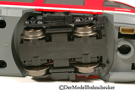 Das Modell setzt sich dank des Glockenankermotors fast lautlos in Bewegung. Die Schleifergeräusche sind zu vernachlässigen. Innovativ der senkrechte Einbau des Motors unter Beibehaltung der Schwungmasse. Ein Ruckeln ist selbst bei Fahrstufe eins nicht festzustellen. Im analogen Fahrbetrieb: ist der Betrieb ebenfalls überzeugend. |