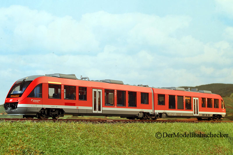 freien Durchblick durch den Fahrgastraum haben kann. Der Antrieb liegt auf dem mittleren Drehgestell und ist senkrecht ausgeführt. Besonders zu erwähnen ist, dass hier ein Glockenankermotor eingebaut wurde, der von sich aus sehr gute Fahreigenschaften mitbringt. Die Beleuchtung und der Sound ergänzen das gelungene Modell. Die Fahreigenschaften sind sehr gut. Ein Ruckeln konnten wir im Digitalbetrieb in keiner Situation feststellen. Durch das Umstecken von Jumpern im Dach und dem Ankuppeln von weiteren Dummy-Einheiten kann eine vorbildgerechte Mehrfachtraktion zukünftig gebildet werden. Ein schönes Modell, dass bei den freunden der "modernen Bahn" sicherlich sehnsüchtig erwartet wurde. Weitere Varianten lassen bestimmt nicht lange auf sich warten. |