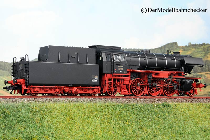 Neubaulok der DB in zeitgemäßer Ausführung und auf heutigem technischen Niveau. Als weitere Variante nach der 23 002 kommt nun die "Soundvariante" als 23 001 mit silbernen Kesselringen. Das Modell ist optisch gelungen und gibt das Vorbild sehr gut wieder. Es wurde sehr viel Wert auf die Detaillierung gelegt. Dies spiegelt sich u.a. an den separat angesetzten Rohrleitungen und Ventilen und einer sehr präzisen Beschriftung wieder. Das Modell kann mit einem Rauchsatz nachgerüstet werden. Die Fahreigenschaften sind gut. Die Zugleistung ist sehr gut, dank schwerem Metallgehäuse und einer guten Übersetzung bei einer sehr geringen Stromaufnahme. Das Modell verfügt serienmäßig über warmweiße LED. Info: Beim Öffnen des Gehäuses und Wiederverschließen sollte unser Tipp befolgt werden, um verbogene Leitungen zu vermeiden oder lange "herumdoktern zu müssen". |