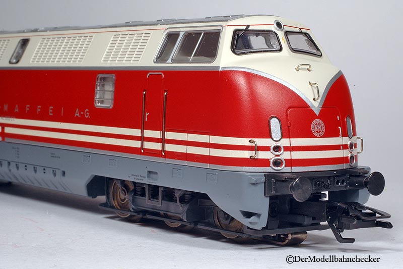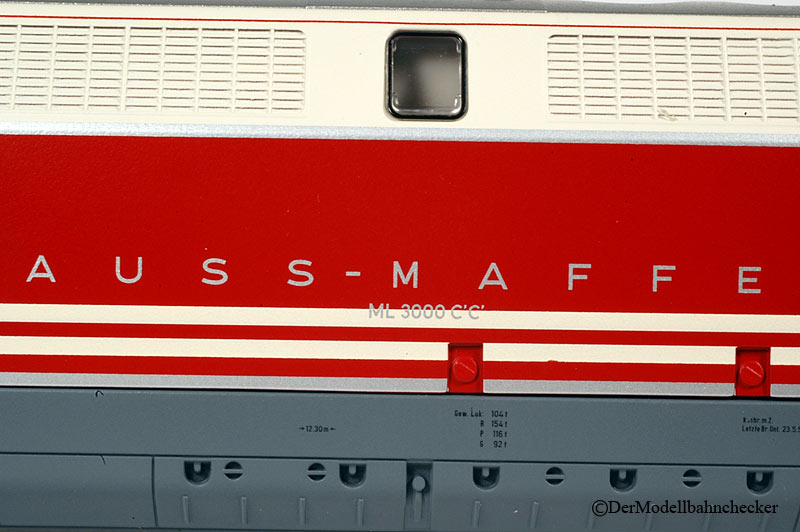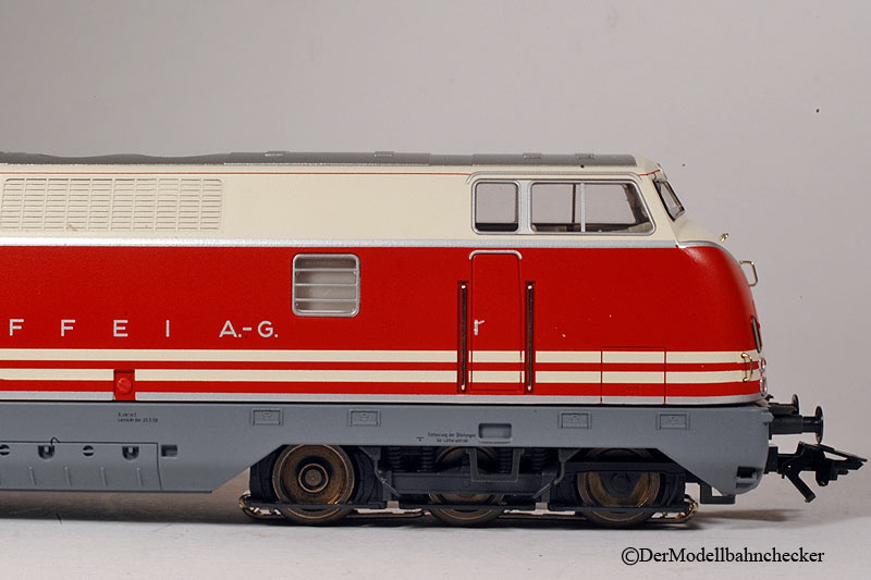 gehalten. Die Zierlinien sind scharf abgesetzt. Sämtliche Beschriftungen, sind wie von Märklin gewohnt sehr gut ausgeführt. Es wurde nicht vergessen einige Beschriftungen oder Beschilderungen aufzudrucken. Dazu gehören auch die Firmenschilder |