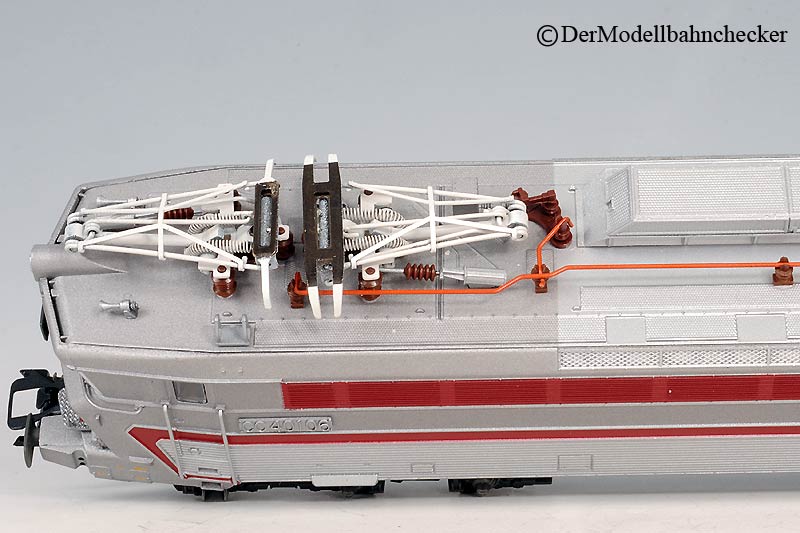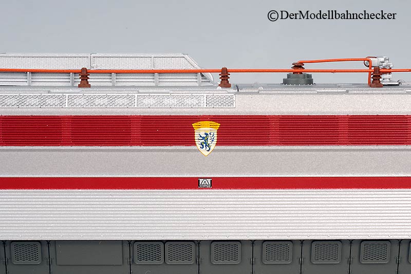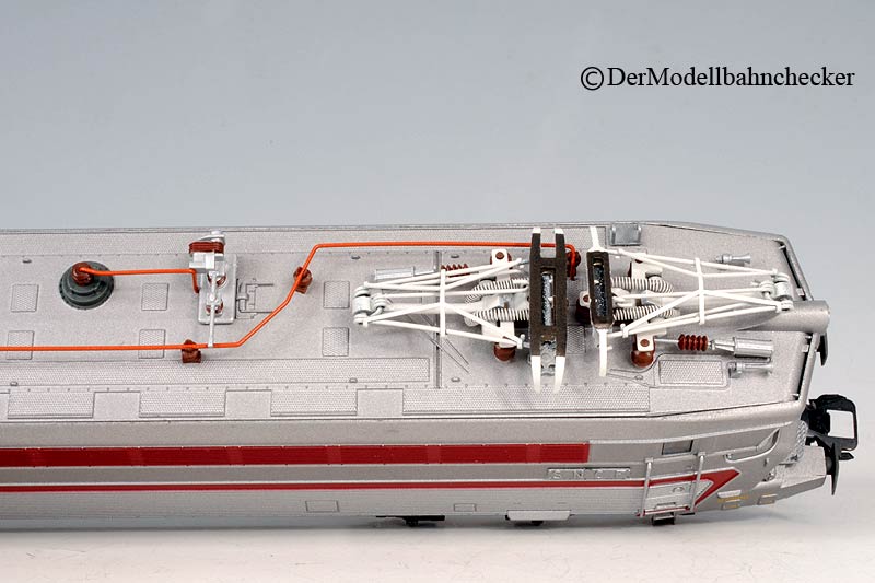 Der gesamte Lokkasten aus Metall verfügt über feine Gravuren, ebenso die Drehgestellblenden und die Dachaufbauten.