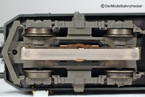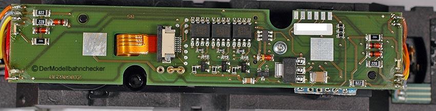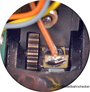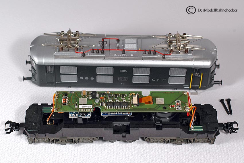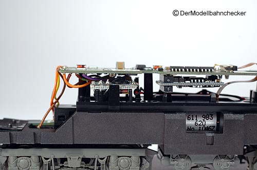 gelblicher LED. Das vorgesehene rote Rücklicht kann im Fahrbetrieb nicht geschaltet werden. Die Ausleuchtung ist deutlich, aber nicht zu stark. Eingebauter schweizer Lichtwechsel. Die Dioden der Frontlichter werden nicht durch die eingebaute Abdeckplatte geschützt. Diese liegt direkt oben auf und wird nach oben gespreizt. Eine Zerstörung der Dioden ist somit nicht ausgeschlossen. ![]() |