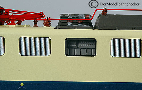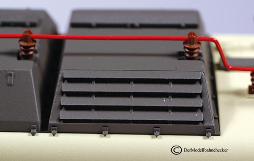 Feine Gravuren sind am gesamten Lokkasten, der aus Metall geformt wurde, sowie an den Drehgestellblenden und bei den Dachaufbauten vorhanden.