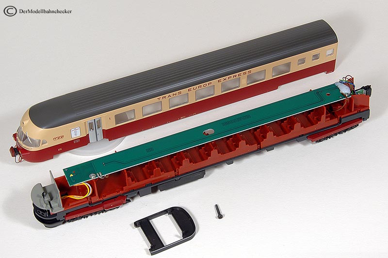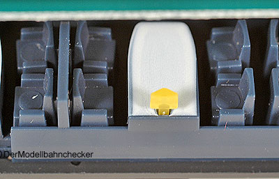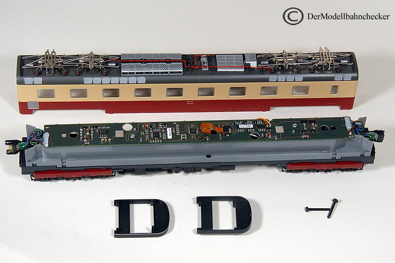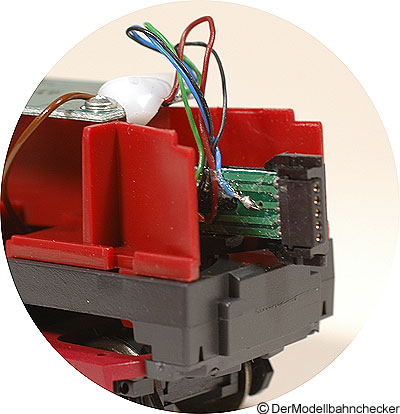 Um eine ausreichende Stromversorgung zu gewährleisten, wird bei jedem Wagen - außer dem Maschinenwagen - von jeweils einem Drehgestell der "Schienenstrom" abgenommen. Das Modell verfügt zudem über eine Schleiferumschaltung. Das Modell fährt schön gleichmäßig in Fahrstufe 1 und reagiert bereits mit den Werkseinstellungen mit samtweichen Übergängen auf Änderungen am Fahrregler. Das Schleifergeräusch war kaum störend zu vernehmen.