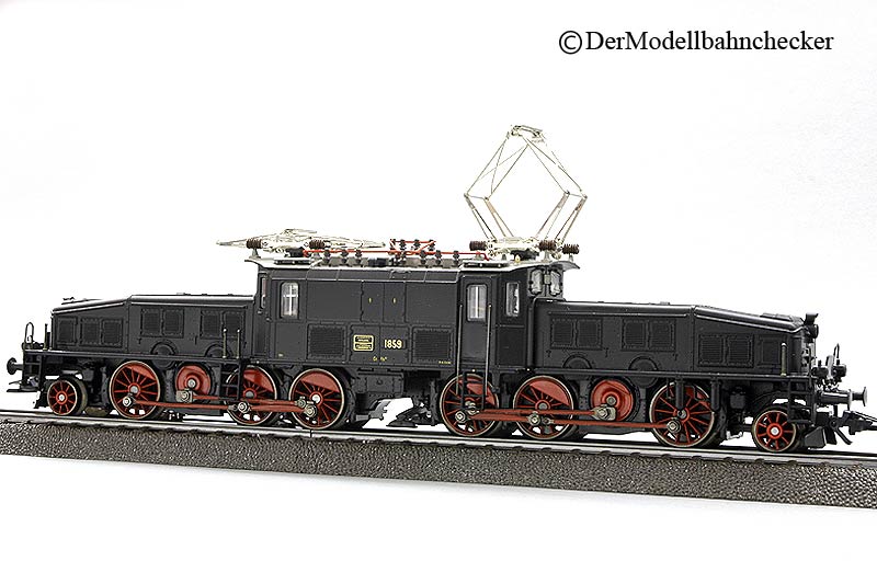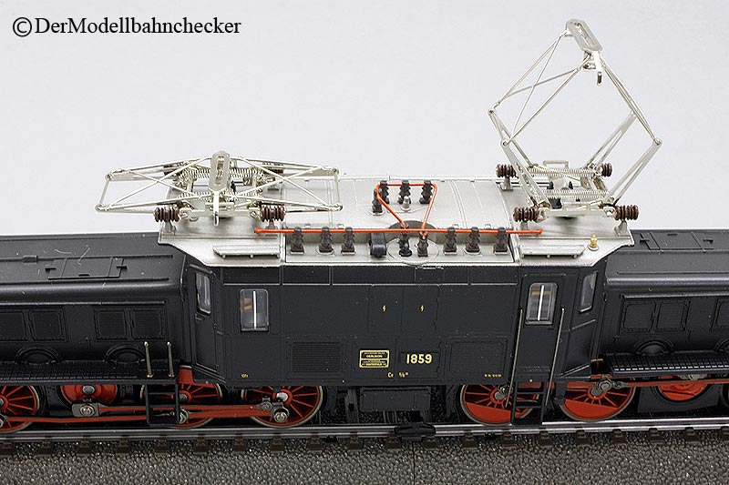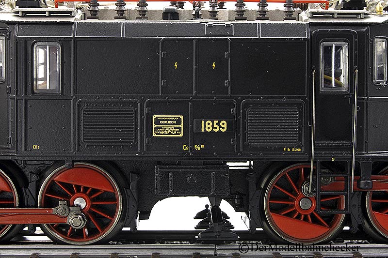 Auch wenn die Bilder es nicht ganz darstellen mögen, so ist die Lok doch in einem schwarzen Farbton gehalten. Sämtliche Beschriftungen sind sauber aufgebracht worden. Leider ist die Verkabelung durch die "Maschinenraumfenster zu sehen. |