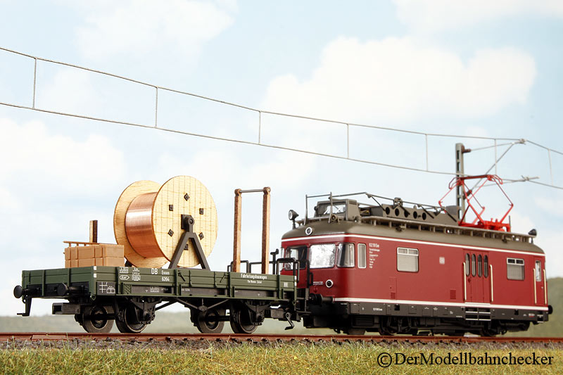 Es ist stationiert in Essen und dokumentiert die Elektrifizierung im Ruhrgebiet zu jener Zeit. Über die vom Modell #39970 bekannten Funktionen der Arbeitsbühne (Heben und Senken etc.) verfügt dieses Modell nicht. Der Sounddecoder verfügt aber über sämliche Sounds vom Fahrgeräusch bis hin zu den "Arbeiten". Stattdessen umfasst das Set einen Niederbordwagen mit Kabeltrommel und Leitern etc., der mittels Spezialkupplung gekuppelt werden kann. Aufgrund des Dieselantriebs des Turmtriebwagens müssen aber auch alle anderen Epoche III-Modellbahner ohne Oberleitung nicht auf das schmucke Modell verzichten und können die Fahrt über die nicht mit dem Fahrdraht überspannten Strecken wie beim Vorbild problemlos als "Überführungsfahrt" ausgeben. Die Fahreigenschaften sind mehr als ausreichend und die Lackierung frei von Fehlern. Die von einigen oft genannte Orangenhaut ist nicht vorhanden. Allerdings fällt uns auf, dass das Gehäuse offensichtlich mittels Pulverlackierung seinen Anstrich bekommen hat.
