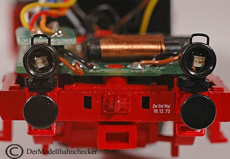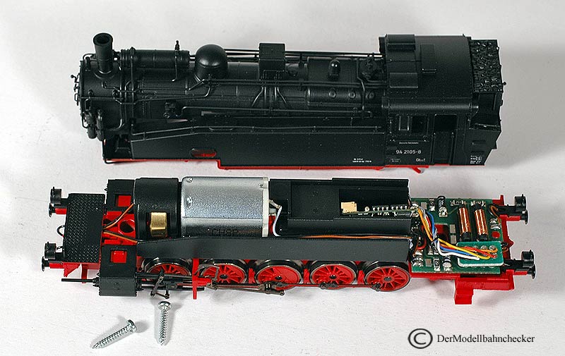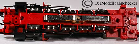 | Fahreigenschaften - DIGITAL Bei diesem Modell befindet sich ein langer Schleifer zwischen der B und E-Achse. Das Modell setzt sich mit sehr geringer Geschwindigkeit in Bewegung. Der Motor ist sehr leise. Erst bei deutlich zu hoher Geschwindigkeit ist neben den systembedingten Schleifergeräuschen auch ein Motorengeräusch zu hören. Der Übergang der einzelnen Fahrstufen im Motorola-Format ist sanft und nicht sichtbar. Die Übergänge sind fließend. Das Modell ist ausreichend motorisiert und schaffte auch einen langen Testzug im kleinsten Radius ohne Probleme. Im analogen Modus fällt die Höchstgeschwindigkeit etwas geringer aus, ansonsten gelten die o.g. Informationen |