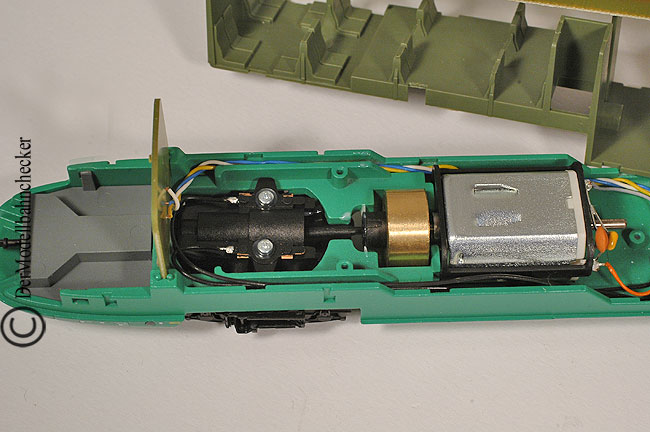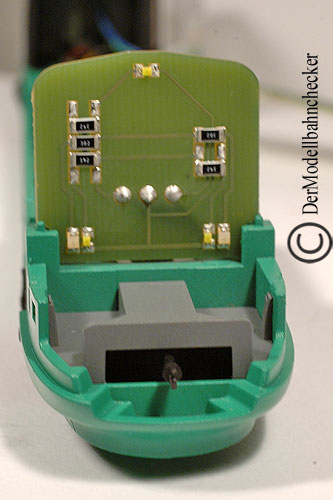 Leuchtdioden gelblich, auf den Platinen hinter dem Führerstand. Die Fahrzeugbeleuchtung ist ebenfalls mittels LED ausgeführt. |